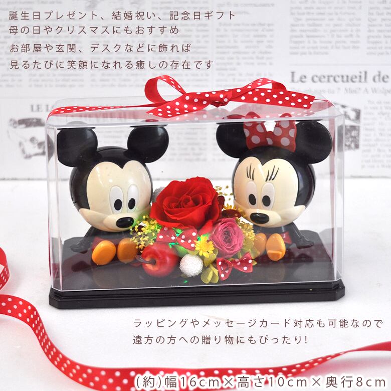 大人気ディズニーキャラクター「ミッキー&ミニー」と、鮮やかなプリザーブドフラワーを組み合わせた特別なフラワーギフト。