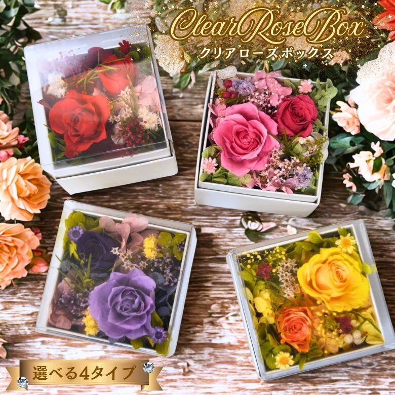 クリアローズボックス /プリザーブドフラワー 蓋付きボックス フラワーボックス 枯れない花 バラ ギフト 誕生日 プレゼント 母の日 結婚祝い 記念日 プロポーズ お祝い 花 ギフト ナチュラル ボックスフラワー